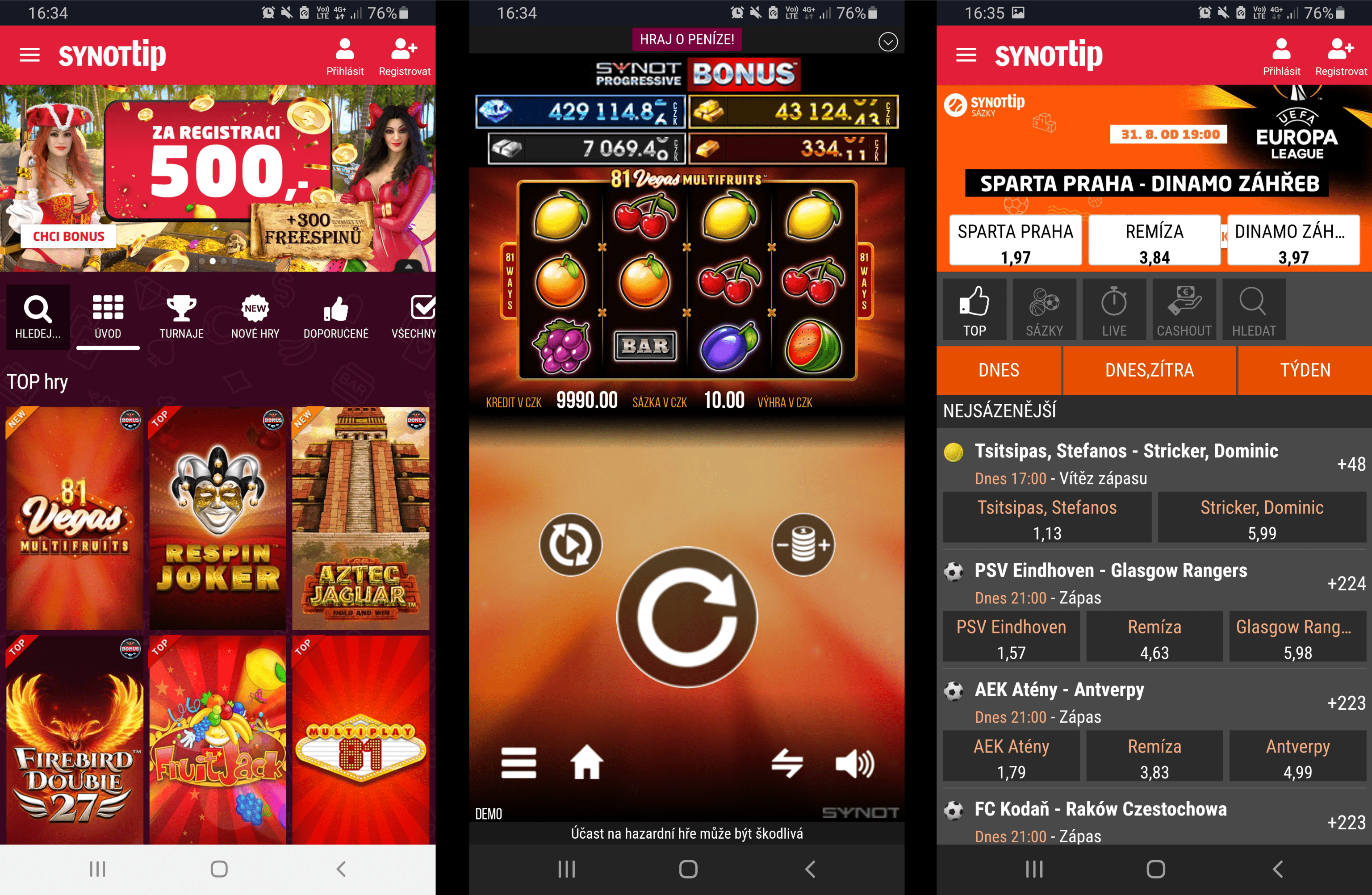Navštívením jejich webu zjistíte, že Synot Tip nabízí široké spektrum služeb – od online kasina, přes sportovní sázky až po speciální kluby pro hráče. Webové stránky jsou elegantní, přehledné a bez rušivých reklam, takže i nováčci se zde rychle zorientují. Různé sekce – kurzové sázky, live sázky, poker, casino jsou velice přehledně oddělené.